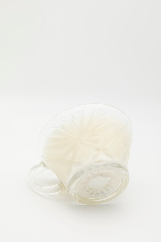 glass teacup with small crosshatching