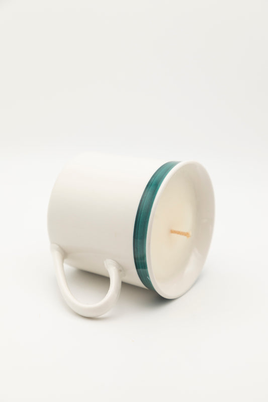 farmhouse style mug with green rim