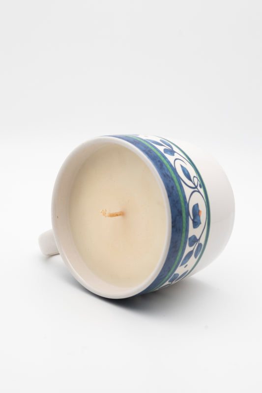 blue floral designed teacup